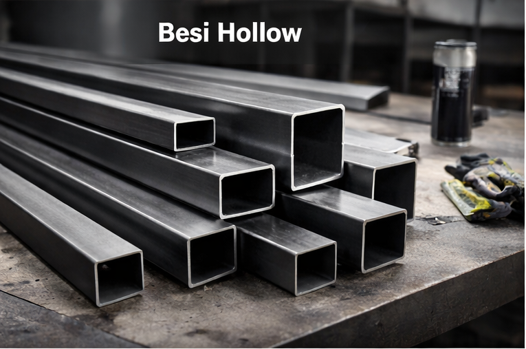 Besi hollow adalah material logam berbentuk pipa kotak atau persegi panjang yang banyak digunakan sebagai rangka furniture. Jenis besi ini dikenal kuat namun tetap ringan, sehingga cocok untuk berbagai kebutuhan furniture indoor maupun semi outdoor.
